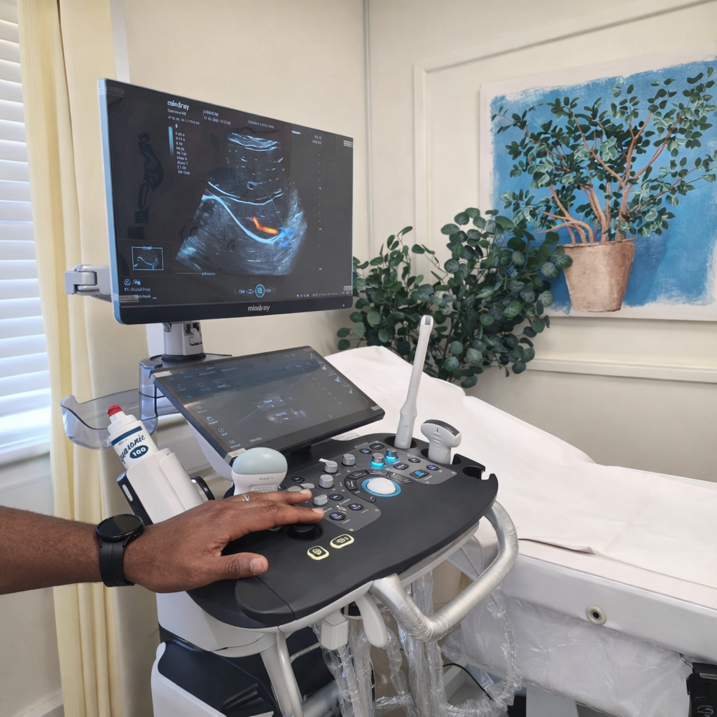 Comprehensive women’s health ultrasound focusing on the uterus, ovaries, and pelvic floor. This scan is a vital diagnostic tool for investigating fibroids, ovarian cysts, PCOS (Polycystic Ovary Syndrome), and indicators of endometriosis. We also provide urgent assessments for post-menopausal bleeding and unexplained pelvic pain to ensure rapid diagnostic clarity. Click button below to book scan